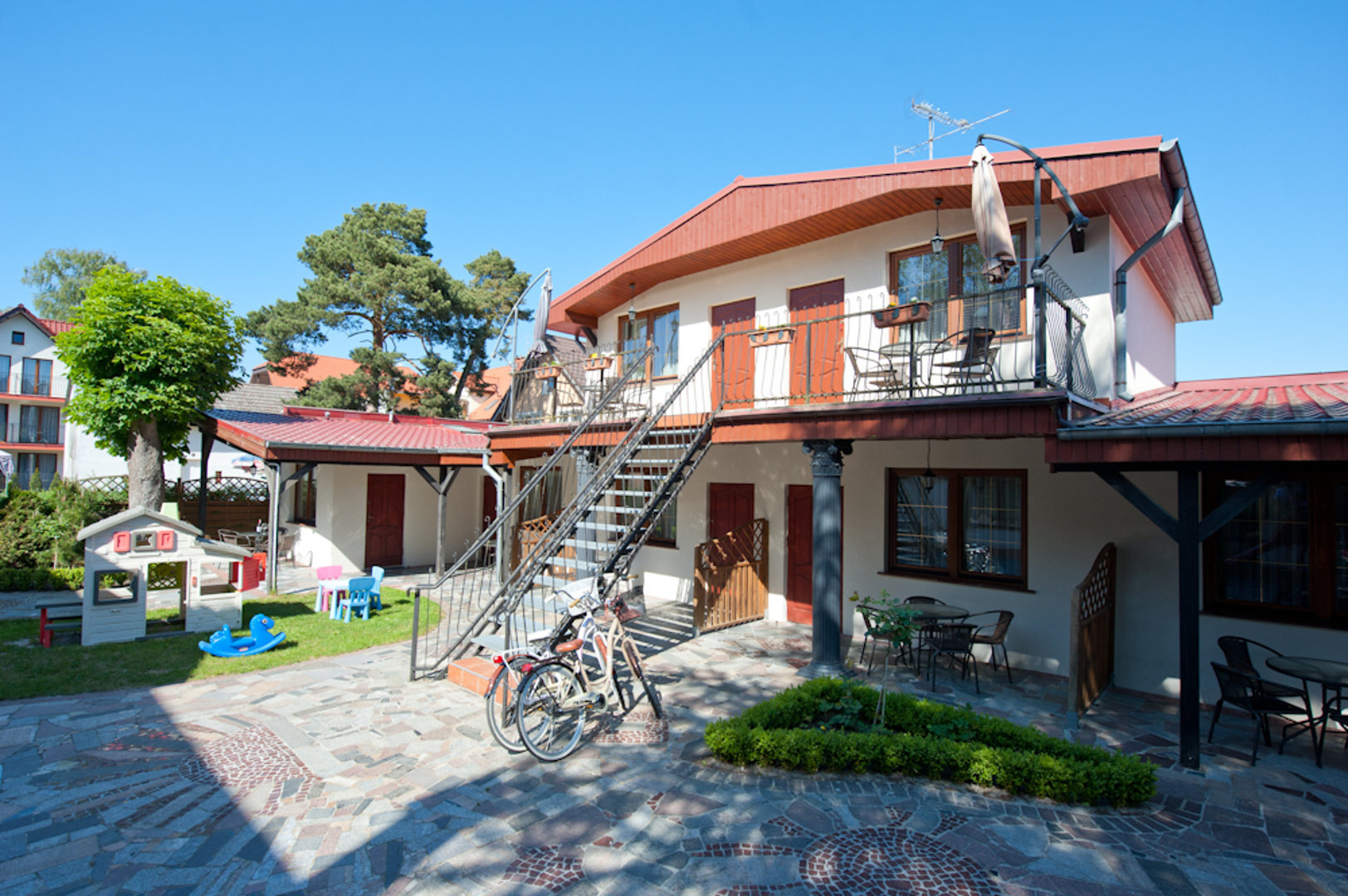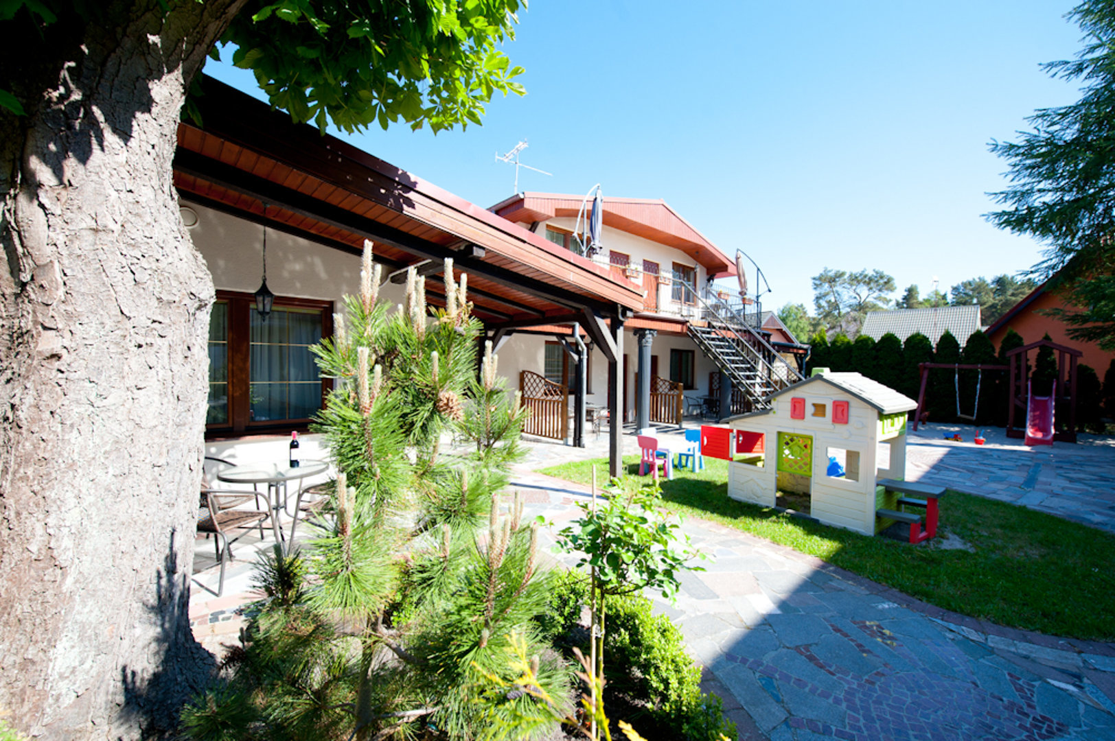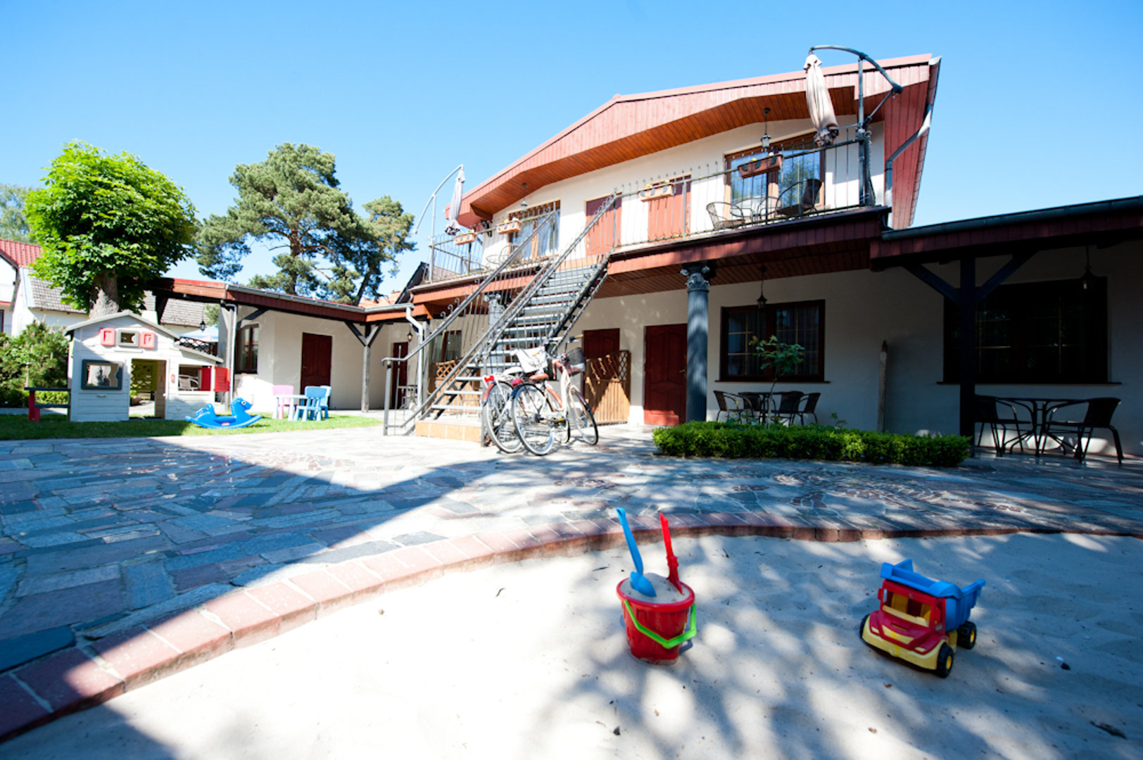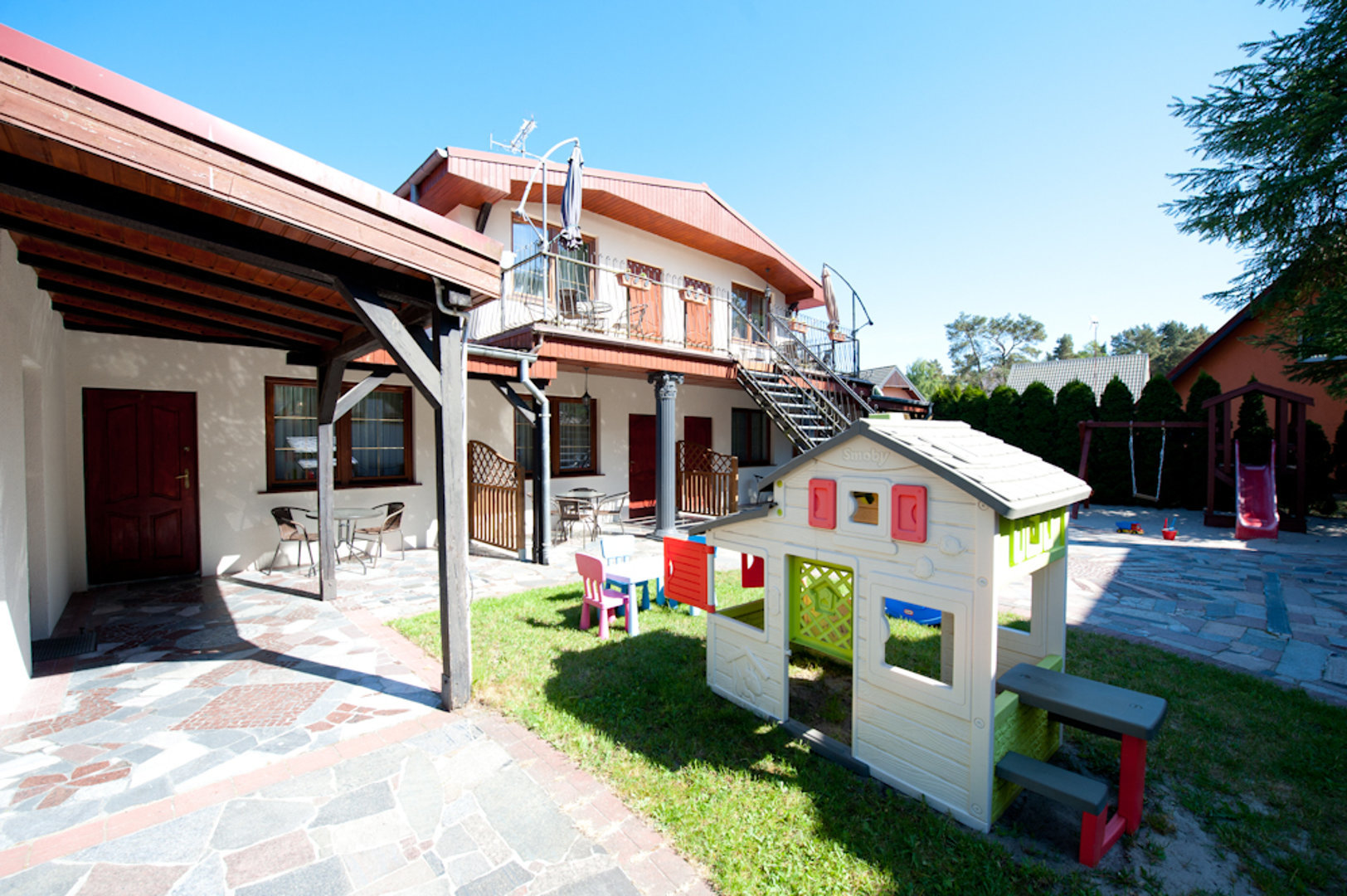 Dla naszych Gości w obiekcie znajdują się: ogólnodostępna, w pełni wyposażona kuchnia, grill, internet bezprzewodowy, a dla dzieci mini plac zabaw.